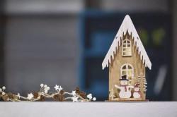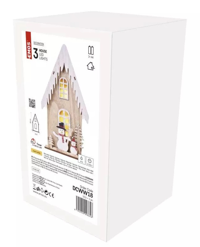 - Dekorace dřevěná 3 LED – Domeček 28.5 cm, 2x AA, vnitřní, teplá bílá, časovač (DCWW18)