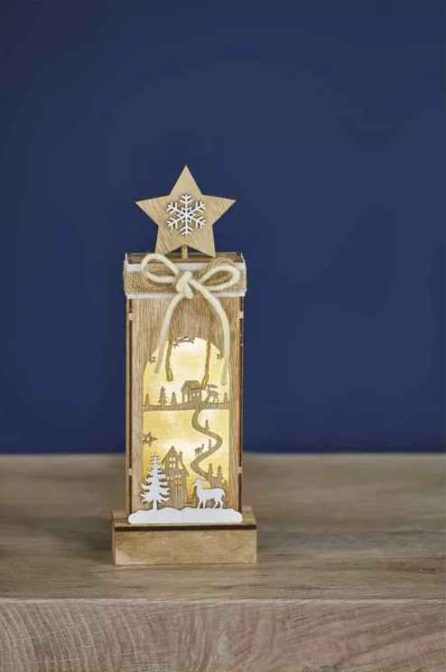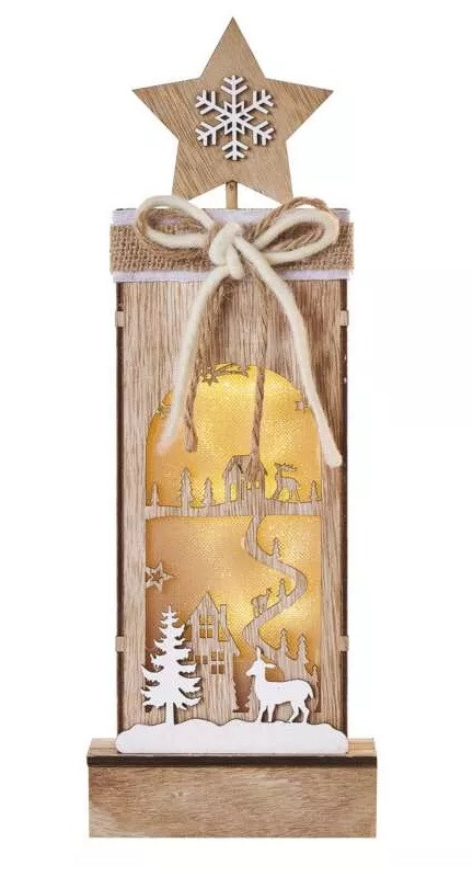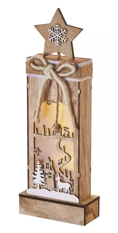 - Dekorace dřevěná 5 LED - zimní krajina, 34 cm, 2x AA, vnitřní, teplá bílá, časovač (DCWW13)