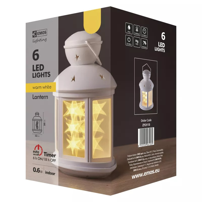 - Dekorace LED lucerna s hvězdami, 3× AA, teplá bílá, časovač (ZY2113)