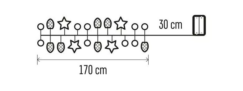 - Girlanda vánoční 20 LED – Šišky, 1.7 m, 2x AA, vnitřní, teplá bílá (DCGW04)