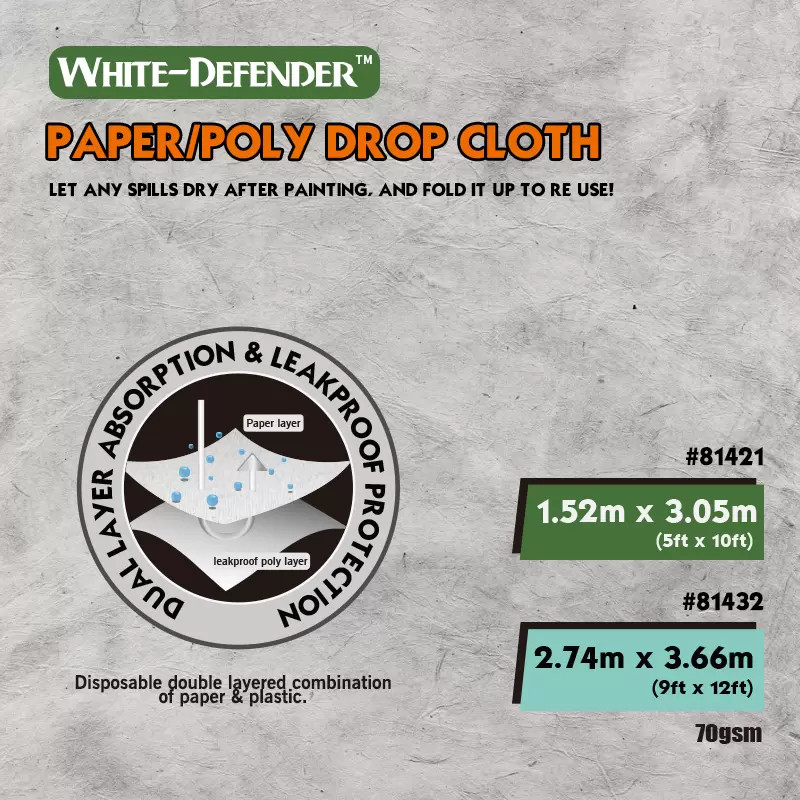 - Papírová/polyethylenová ochranná krycí plachta WHITE-DEFENDER 2,74 x 3,66 m (81432)