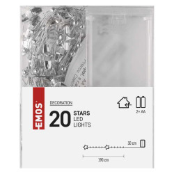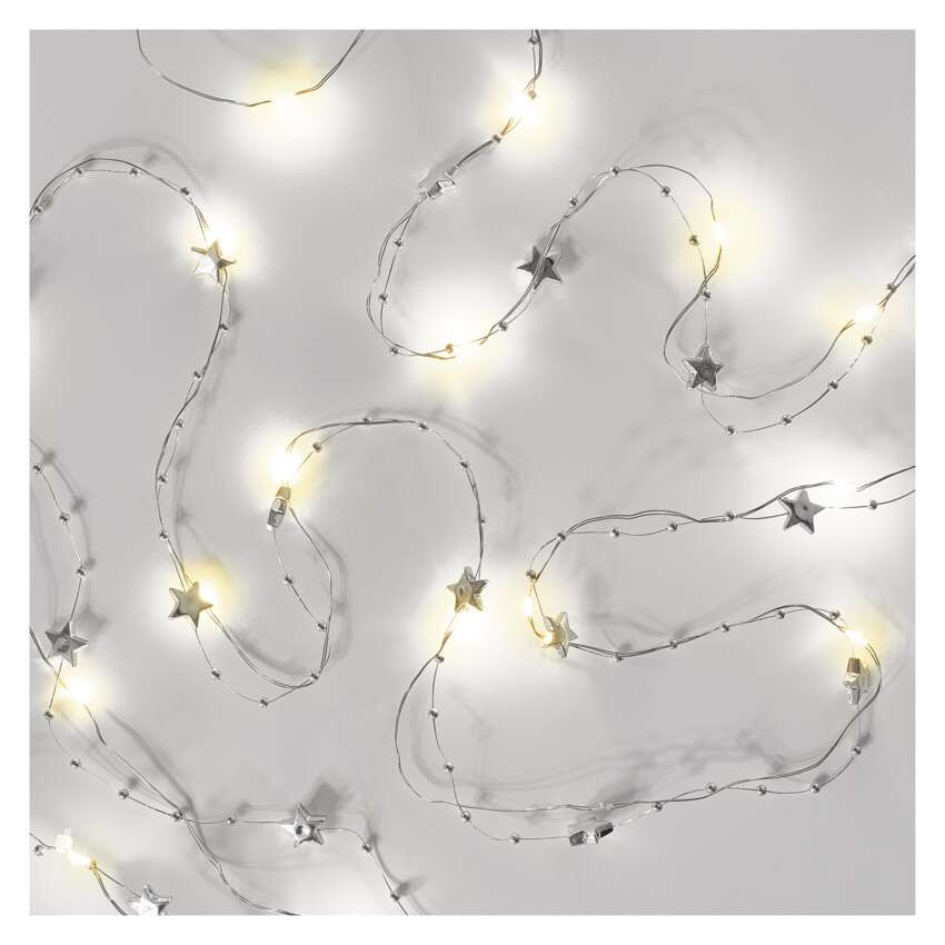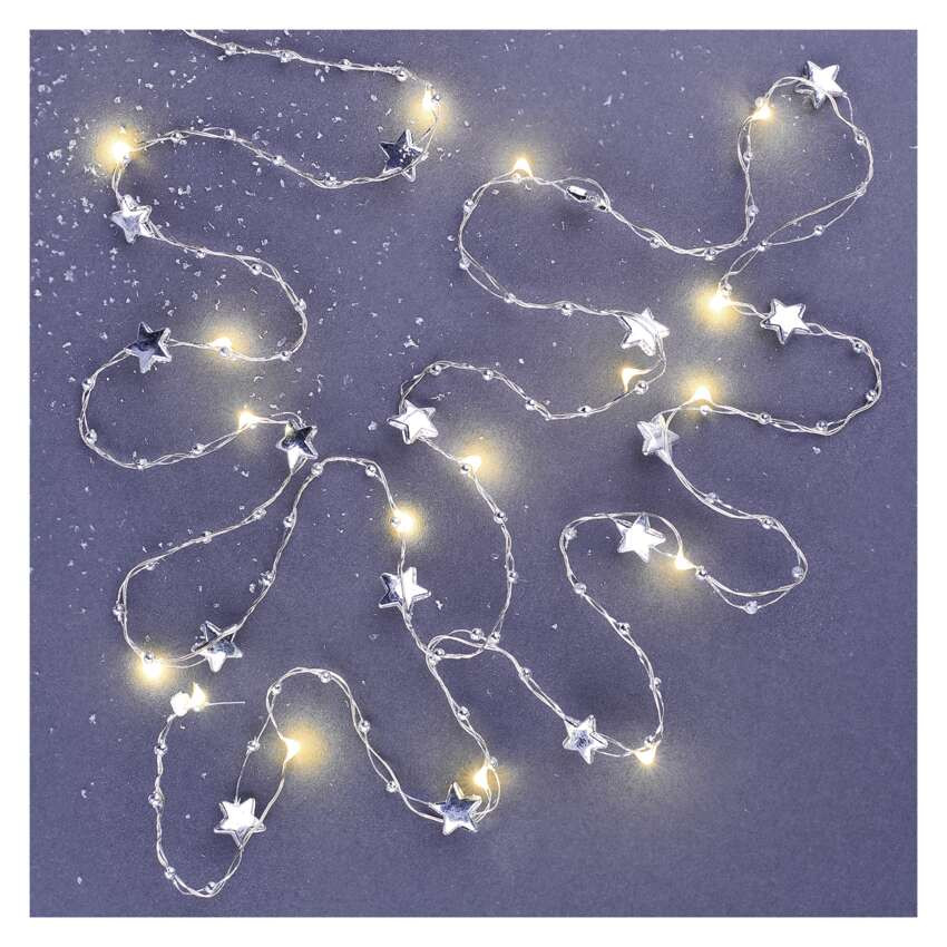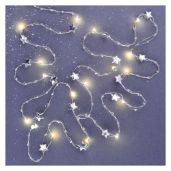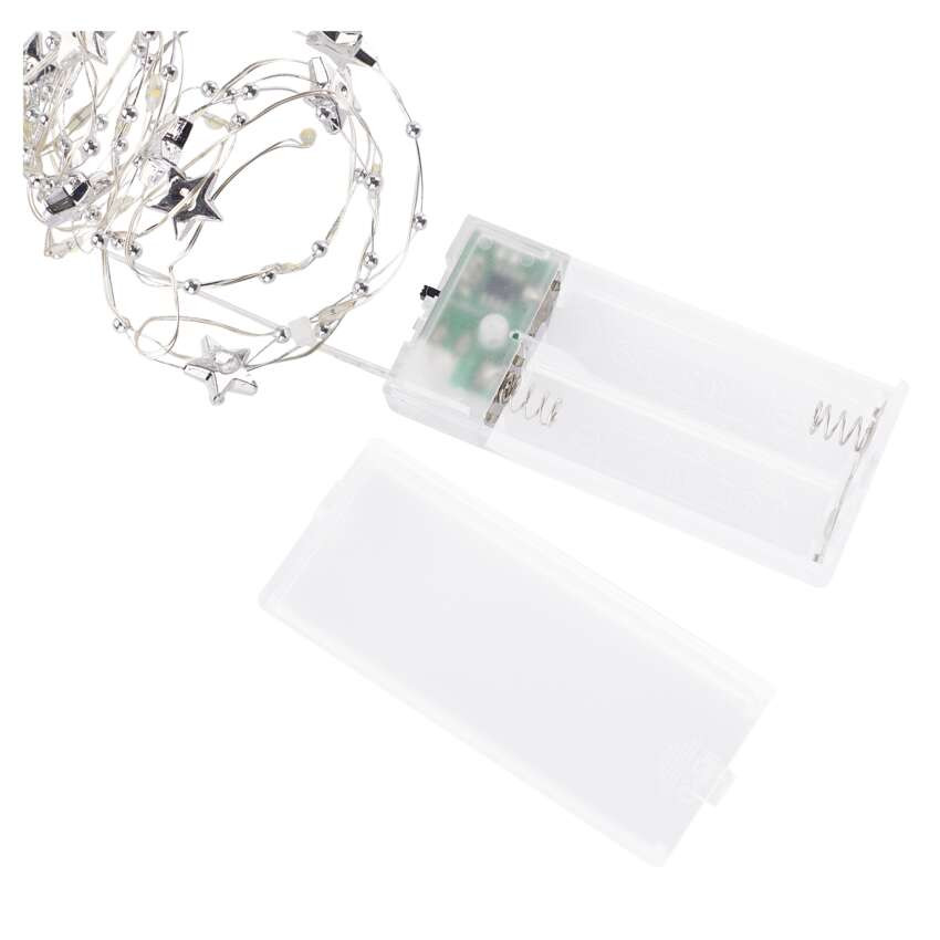 - Řetěz LED hvězdičky, stříbrný 2x AA 1,9 m teplý bílý