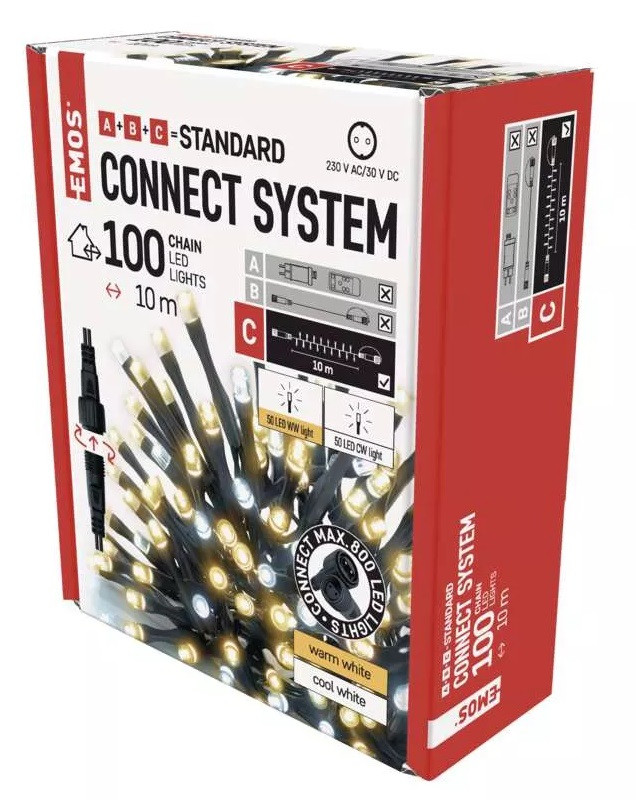 - Řetěz spojovací 100 LED Standard, 10 m, vnější, teplý/studený bílý (D1AN01)