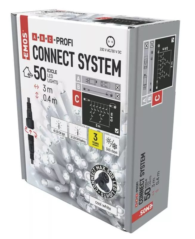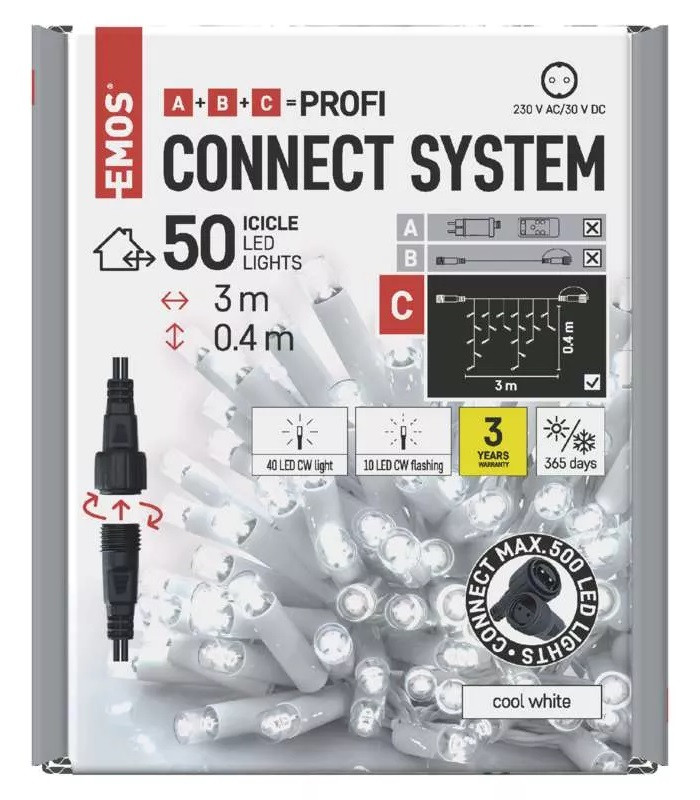 - Řetěz spojovací blikající bílý 50 LED Profi – Rampouchy, 3 m, vnější, studený bílý (D2CC04)