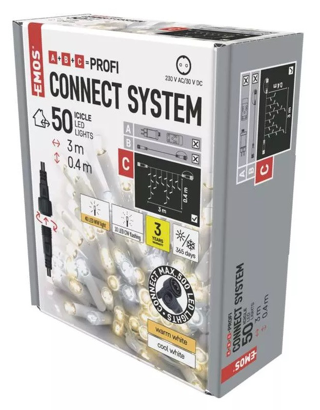 - Řetěz spojovací blikající bílý 50 LED Profi - Rampouchy 3 m, vnější, teplá/studená bílá (D2CN02)