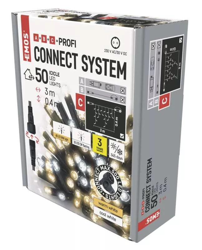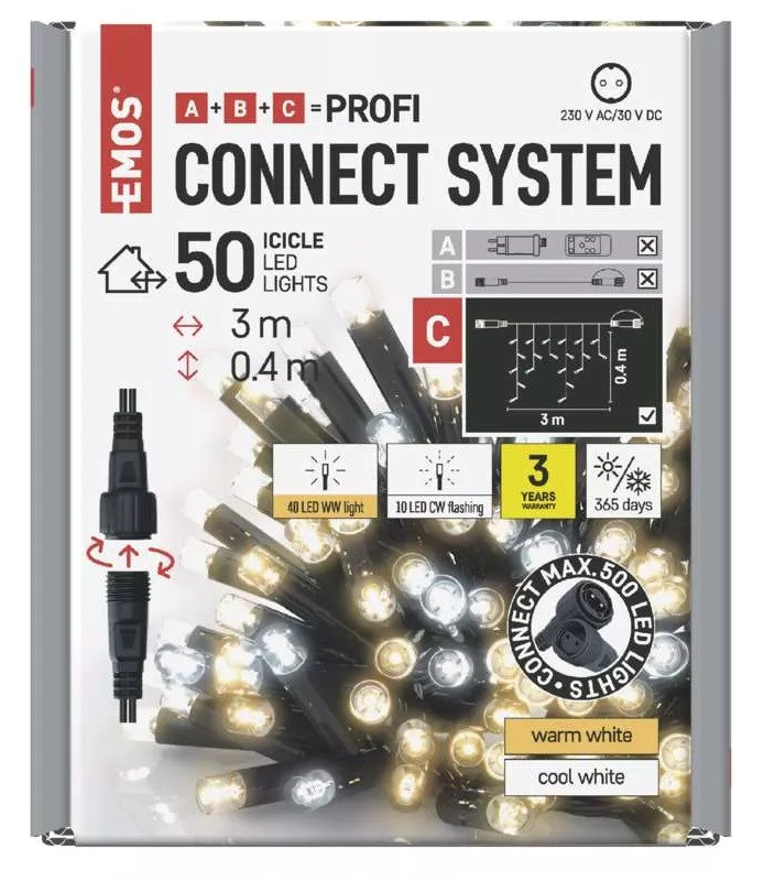 - Řetěz spojovací problikávající 50 LED Profi – Rampouchy, 3 m, vnější, teplá/studená bílá (D2CN01)