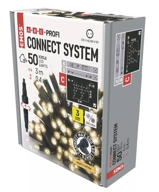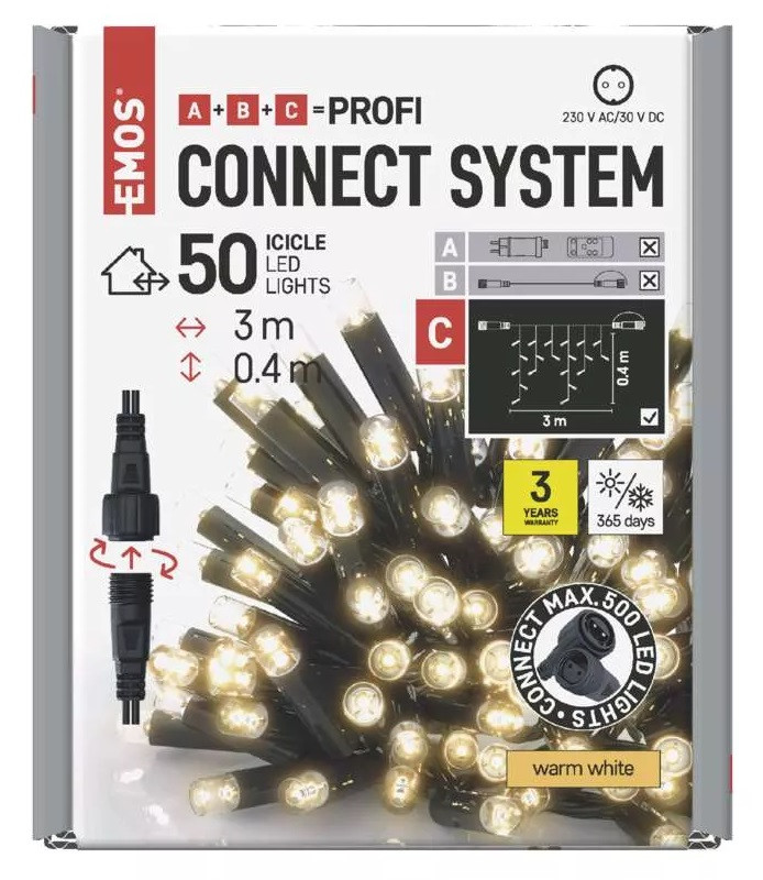 - Řetěz spojovací Profi 50 LED – rampouchy, 3 m, vnější, teplá bílá (D2CW01)