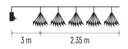 - Řetěz světelný 150 LED – trsy, nano, 2.35 m, vnitřní, teplá bílá, časovač (DAW08)