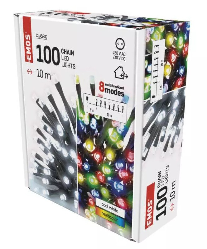 - Řetěz vánoční 100 LED 2v1, 10 m, venkovní/ vnitřní, studená bílá/multicolor, programy (D4AJ01)
