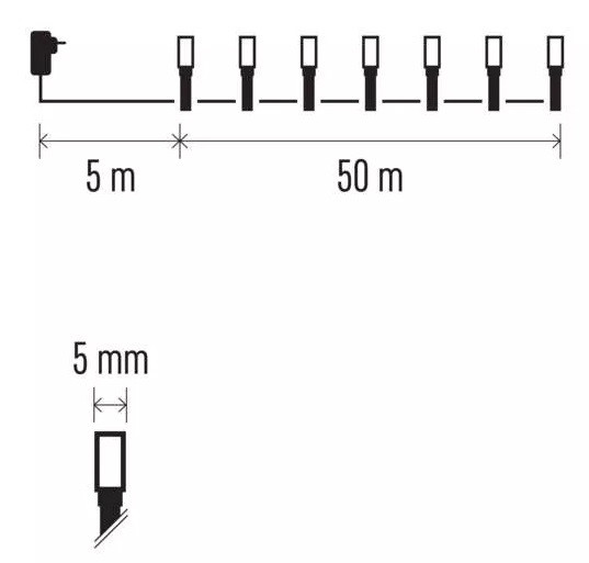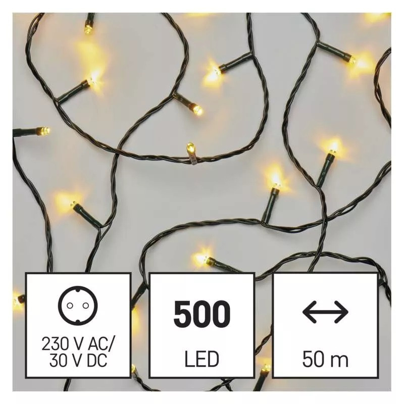 - Řetěz vánoční 500 LED, 50 m, venkovní/ vnitřní, teplá bílá, časovač (D4AW06)