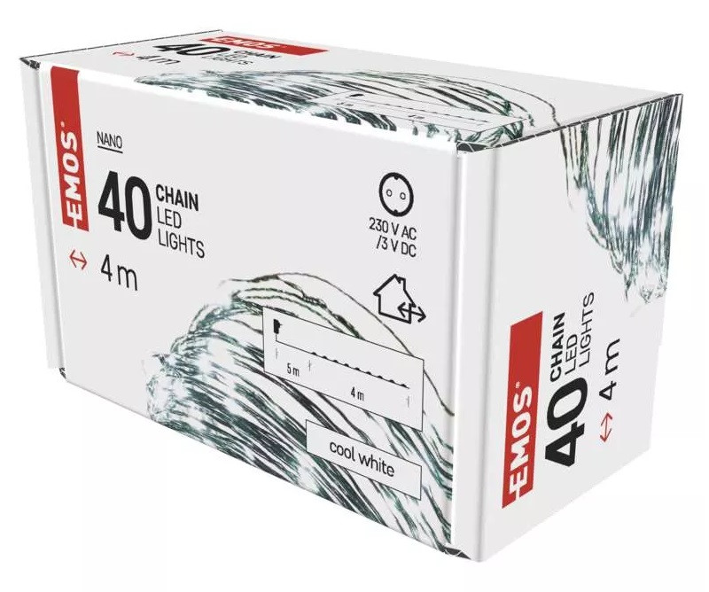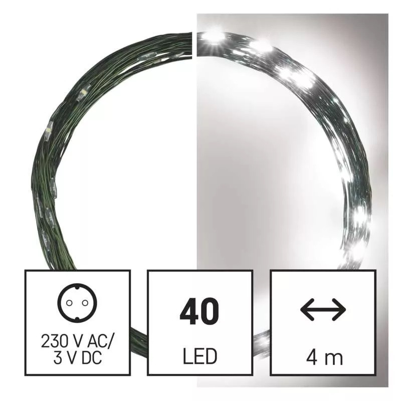 - Řetěz vánoční NANO 40 LED zelená, 4 m, vnější/ vnitřní, studená bílá, časovač (D3AC03)