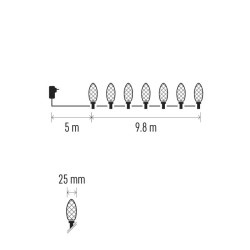 - Řetěz vánoční šišky 50LED 9,8M IP44 studená bílá