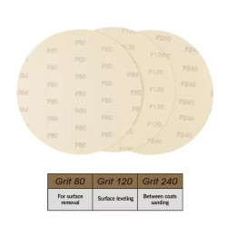• 6 ks brusného papíru z oxidu hlinitého (2 ks od každého se zrnitostí 80, 120, 240)