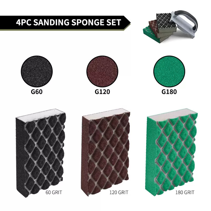 • 3 brusné houby zrnitostí 60, 120 a 180 s ergonomickou rukojetí