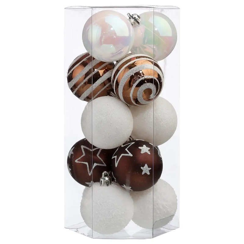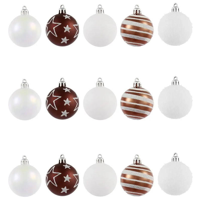 Sada vánočních koulí 50 mm bílá/bronz 15ks
