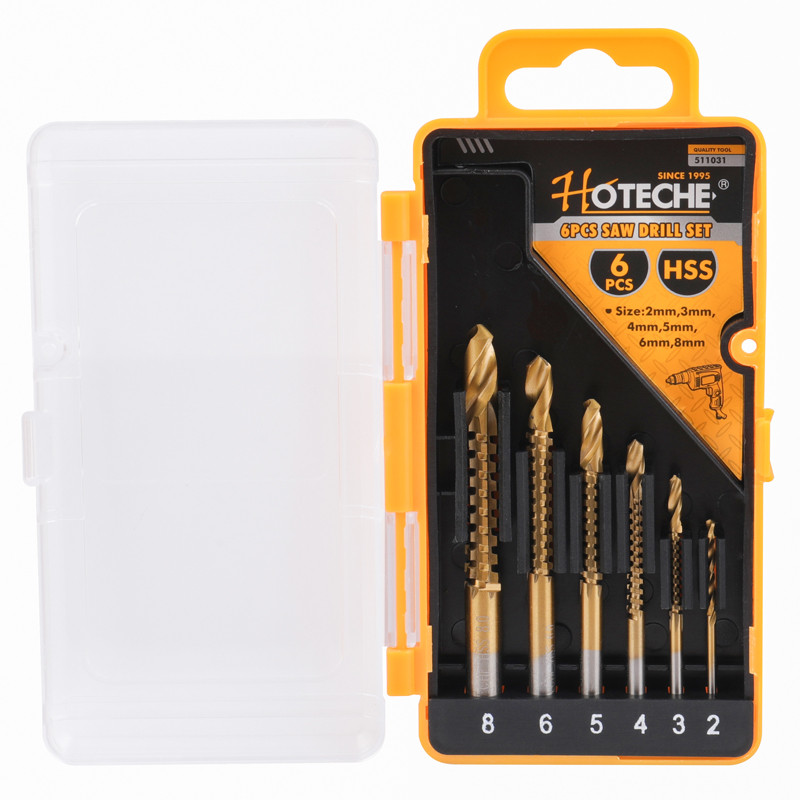 - Sada vrtáků frézovacích TiN 2-8 mm 6-dílná HOTECHE HT511031