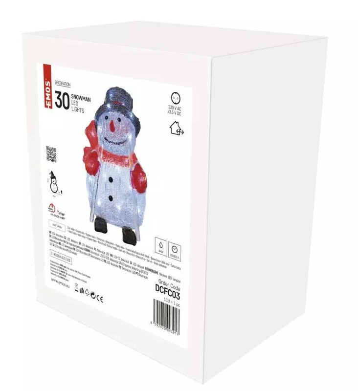 - Sněhulák vánoční 30 LED, 28 cm, vnější/vnitřní, studená bílá, časovač (DCFC03)