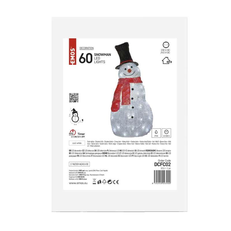 - Sněhulák vánoční LED 61 cm, studená bílá, čas. (DCFC02)