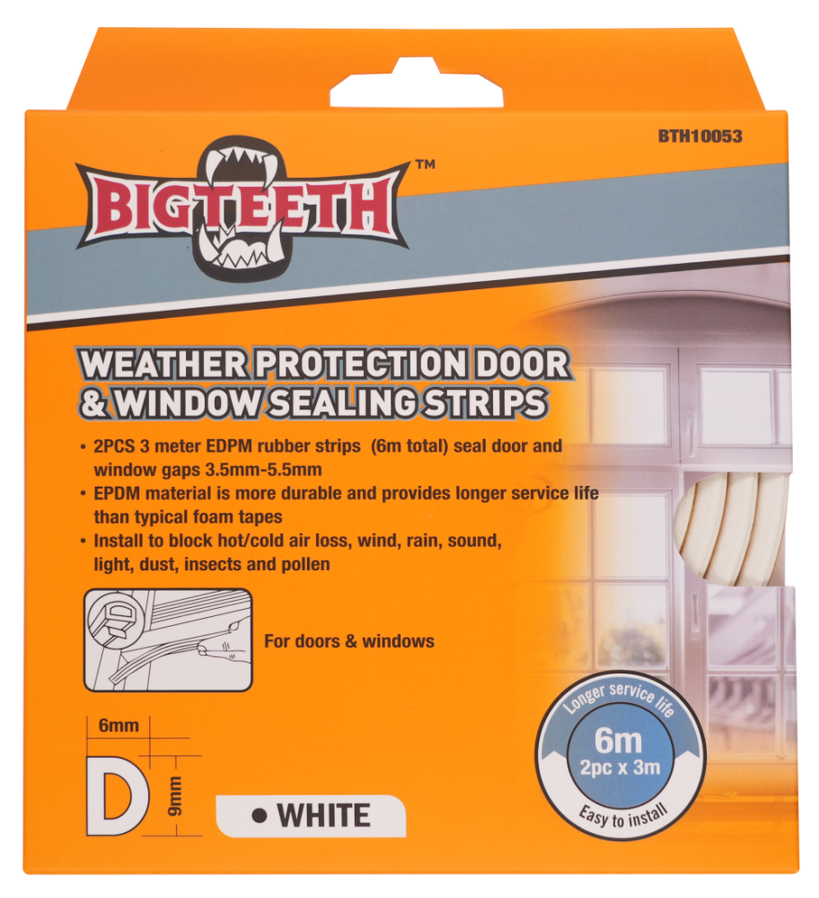 - Těsnění na dveře a okna, typ D, bílé 2ks 3m (BTH10053)