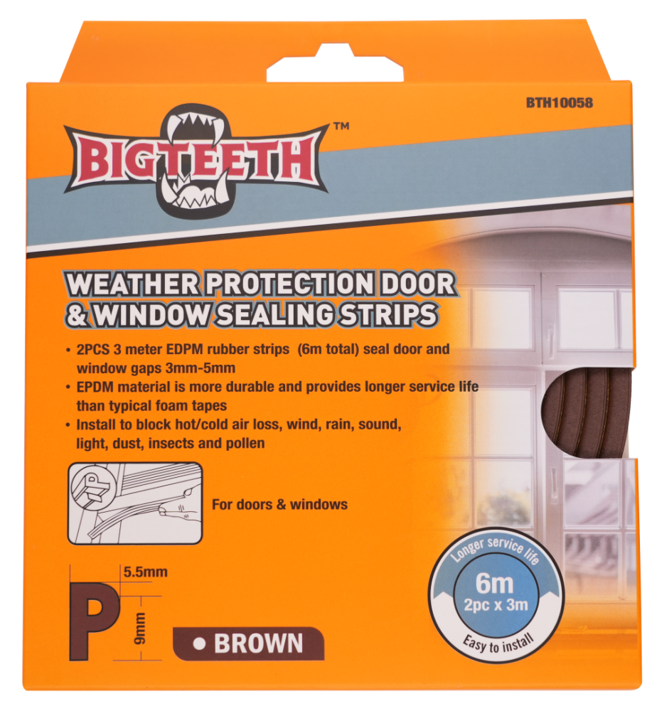 - Těsnění na dveře a okna, typ P, hnědé 2ks 3m (BTH10058)