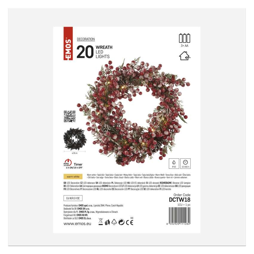 - Věnec vánoční zdobený LED 3xAA 38 cm