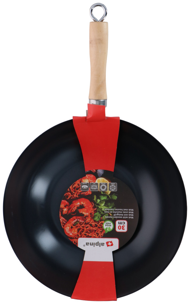 Wok s dřevěnou rukojetí ALPINA 30cm nepřilnavý